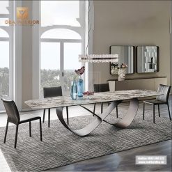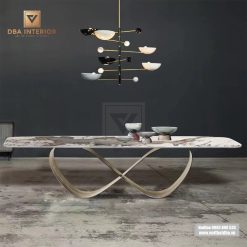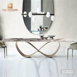 Bàn ăn hiện đại mặt đá cao cấp chân cánh bướm vô cực độc đáo BA50