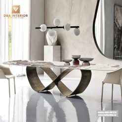 Vì sao nên mua Bàn ăn hiện đại mặt đá cao cấp chân cánh bướm vô cực BA50 tại Nội Thất DBA ?