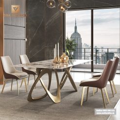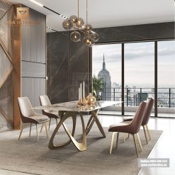 Tham khảo Bàn ăn mặt đá ceramic bóng chân đan chéo sang trọng BA27
