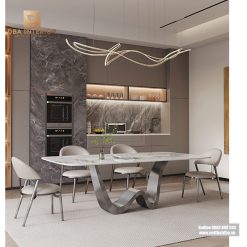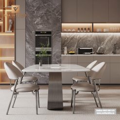 Tham khảo Bàn ăn mặt đá ceramic cao cấp thiết kế độc đáo sáng tạo BA21