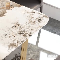 Mặt đá tự nhiên chất lượng cao làm nổi bật sự sang trọng và đẳng cấp của bộ bàn ăn. Với đa dạng màu sắc và hoa văn độc đáo, bạn có thể lựa chọn bàn ăn mặt đá 6 ghế theo phong cách và không gian nội thất của gia đình mình. Bên cạnh đó, bề mặt đá còn chống thấm nước, chống mài mòn và dễ dàng vệ sinh hàng ngày. Bạn không cần lo lắng về vết trầy xước hay ảnh hưởng từ chất lỏng bị tràn đổ lên bàn.