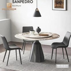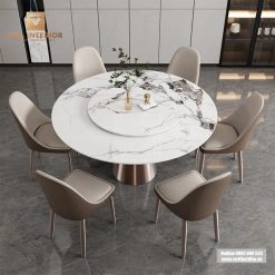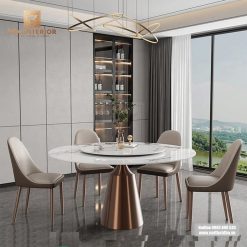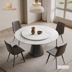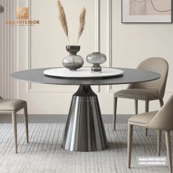 Bàn ăn mặt đá ceramic tích hợp bàn xoay tùy chọn chân mạ sang trọng BA48