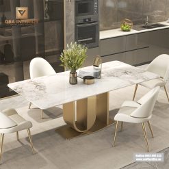 Bàn ăn mặt đá chống xước cao cấp chân lượn độc đáo BA44