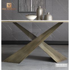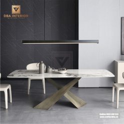 Bàn ăn mặt đá marble chống xước chân chữ X nhập khẩu BA19
