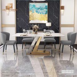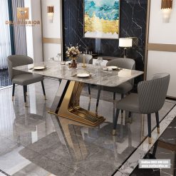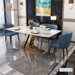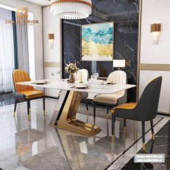 Chất liệu: Có thể sử dụng đá cẩm thạch tự nhiên vân nhân tạo hoặc đá ceramic bóng/ matt để làm bề mặt bàn . Khung chân chất liệu hợp kim mạ titan