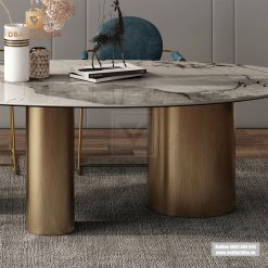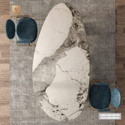 Bàn ăn mặt đá vân sáng dáng dài thiết kế hiện đại BA22