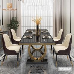 Không chỉ là một nơi để bạn và gia đình thưởng thức các bữa ăn ngon lành, Bàn ăn tân cổ điển mặt đá cẩm thạch mạ vàng BA32 cũng là một trung tâm giao tiếp và gắn kết gia đình. Dễ dàng sắp xếp và chất lượng tốt, chúng tôi cam kết sẽ mang đến cho bạn trải nghiệm ăn uống tuyệt vời và không gian ấm cúng.