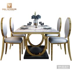 Bạn đang tìm kiếm một bộ bàn ăn nhỏ gọn và tiện lợi cho căn bếp của mình? Hãy thử xem bộ Bàn ăn tân cổ điển mặt đá cẩm thạch mạ vàng BA32 của nội thất DBA. Được thiết kế đặc biệt để phù hợp với không gian nhỏ hẹp, bàn ăn 4 ghế của chúng tôi không chỉ mang lại sự tiện nghi mà còn tạo ra một không gian trang nhã cho gia đình của bạn.