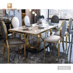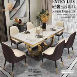 Bàn ăn tân cổ điển mặt đá cẩm thạch mạ vàng BA32