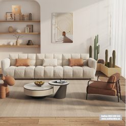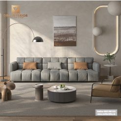• Chất liệu: Chân inox mạ PVD, khung gỗ tự nhiên, đệm mousse bọc da hoặc nỉ nhập khẩu cao cấp