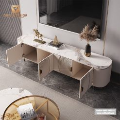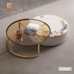 Set bàn trà đôi, kệ TV mặt đá cao cấp phong cách luxury SCB18
