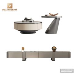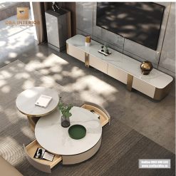 Set bàn trà đôi, kệ TV mặt đá nhập khẩu thiết kế hiện đại SCB21