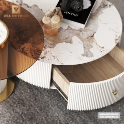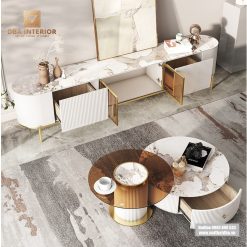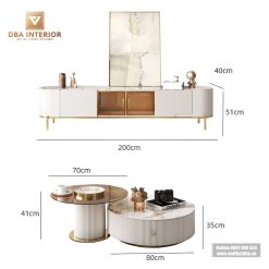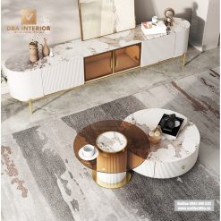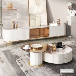 Set bàn trà đôi, kệ TV mặt đá nhập khẩu vân sáng cao cấp SCB12
