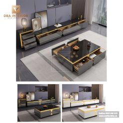 Set bàn trà, tủ kệ cao cấp mặt kính siêu bền nhập khẩu SCB05